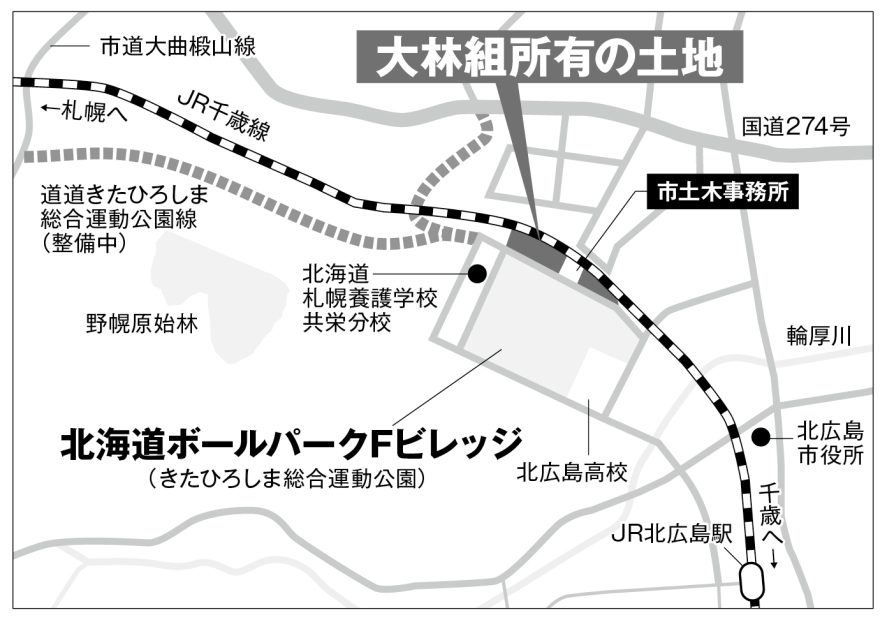 新駅予定地付近を全買収、大林組がデベロッパーに猛アピール 財界さっぽろ編集部 2022年12月14日 09:00 2023年1月号 有料記事 Tweet ©財界さっぽろ 大林組が2019年に買収したボールパーク北側の土地について、球場竣工後の利活用を検討している。新駅とも絡むその中身とは。 大林組が所有するのは、市道を挟んでボールパーク北側の「三日月エリア」と言われる部分。19年5月から20年4月にかけ地権者8者から、計3万2430平方㍍を取得した。 このエリアには北広島市も土木事務所を置いており、土地面積は9240平方㍍... (残り518文字)