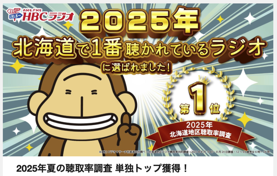 「結果はしっかりと受け止めます。ただ、過去にこんなランキングになったことがあっただろうか……」 ラジオ局関係者が聴取率資料を手元に、首をかしげていた。 25年の聴取率調査(ビデオリサーチ調べ)の結果が9月下旬に公表された。全日平均(月~日、6時~24時)でトップを飾ったのはHBC(1・2%)。2位エフエム北海道(...