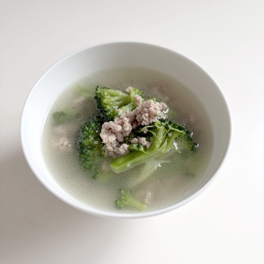 塩麹だけブロッコリーと豚ひき肉のスープ