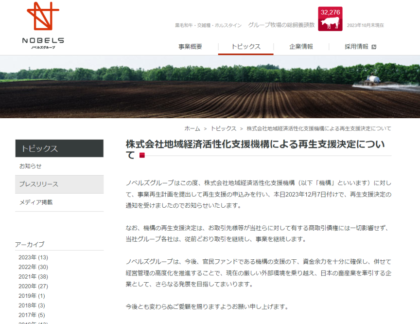 【速報・無料公開】畜産・酪農道内最大手「ノベルズ」グループが官民ファンドの支援で事業再生へ
